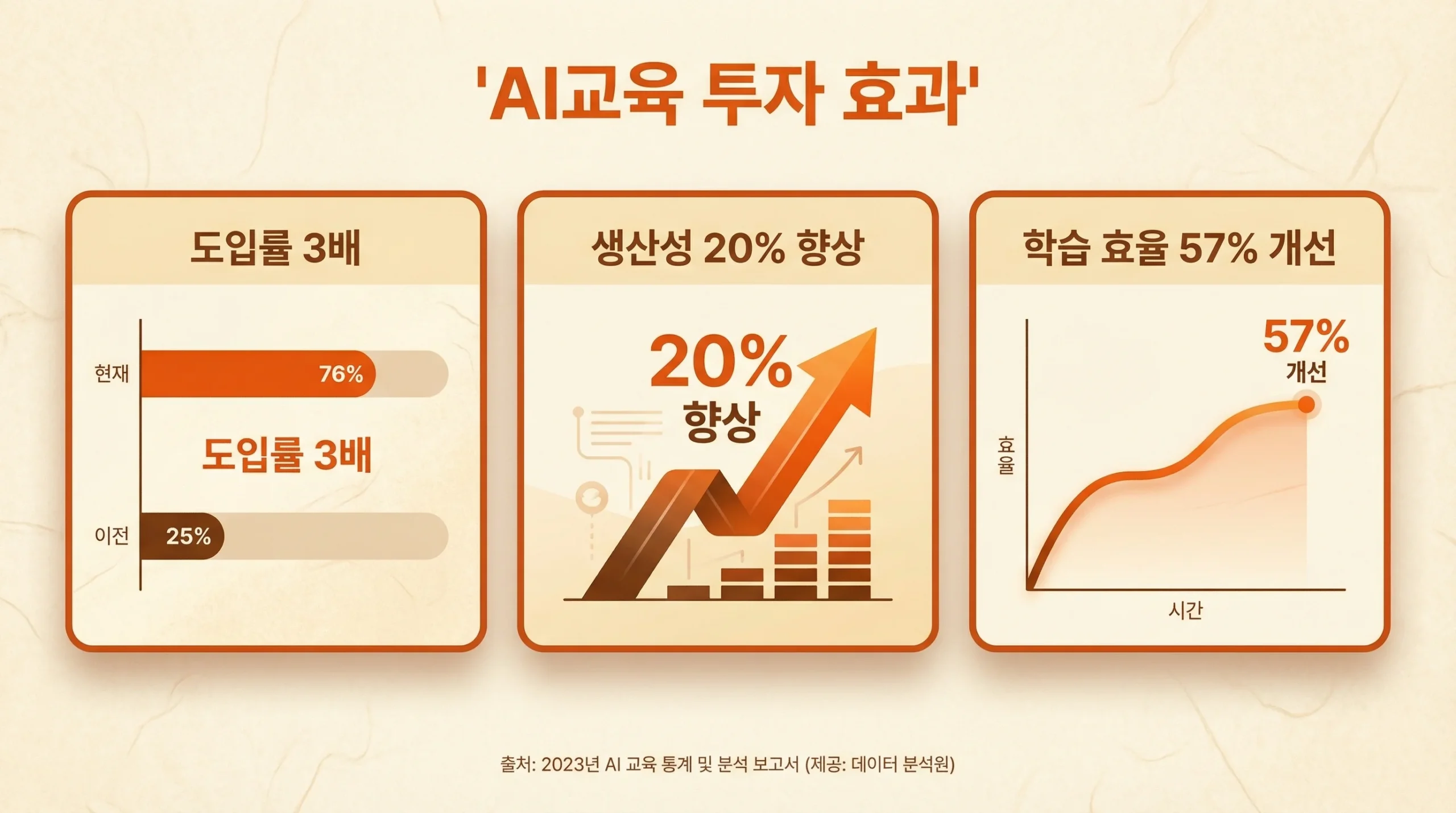- AI 기반 교육을 도입한 기업은 평균 생산성이 20% 증가했습니다