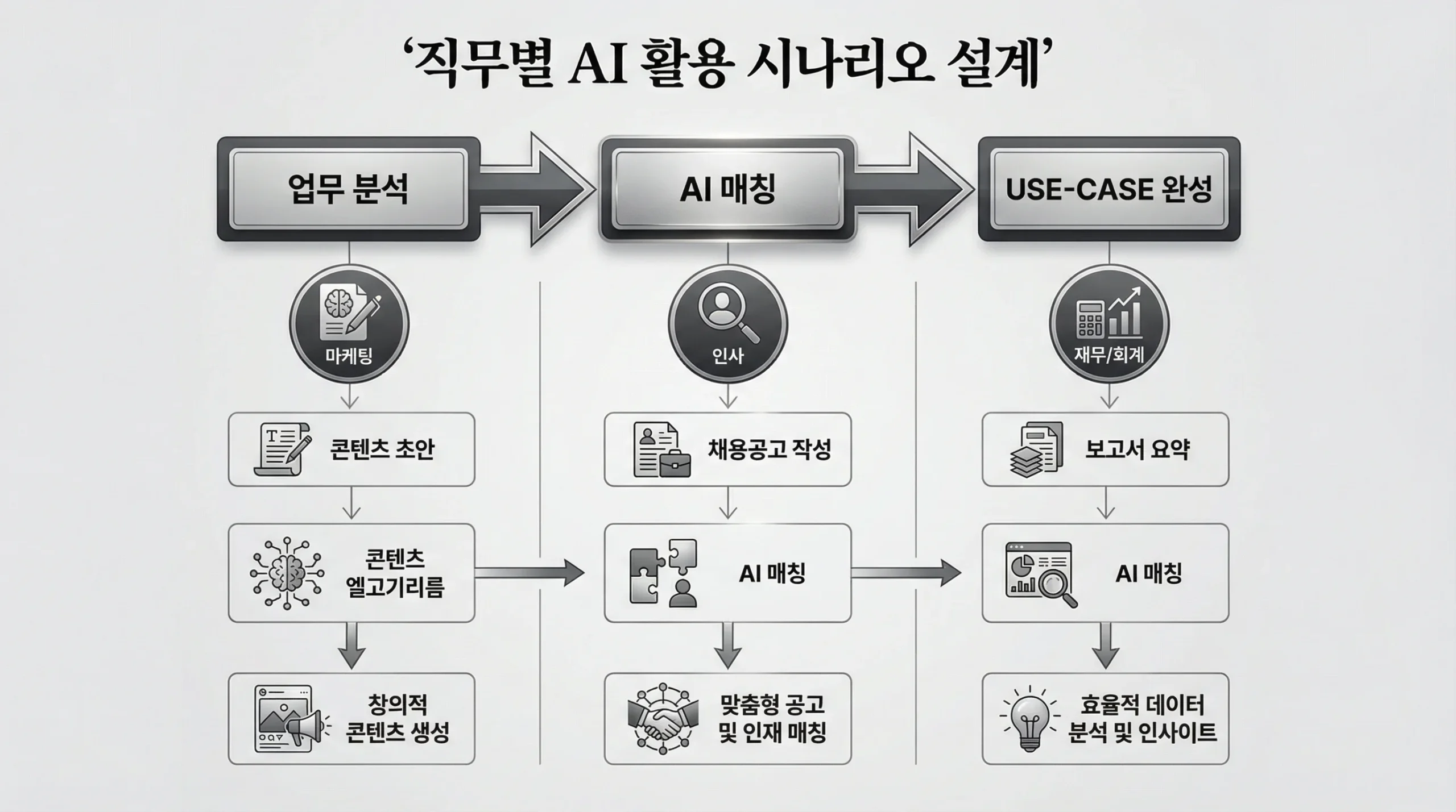 | 경영진 | AI 전략 수립, 투자 의사결정 | 부서장 대상 AI 활용 전략 워크숍 | 분기 1회 |