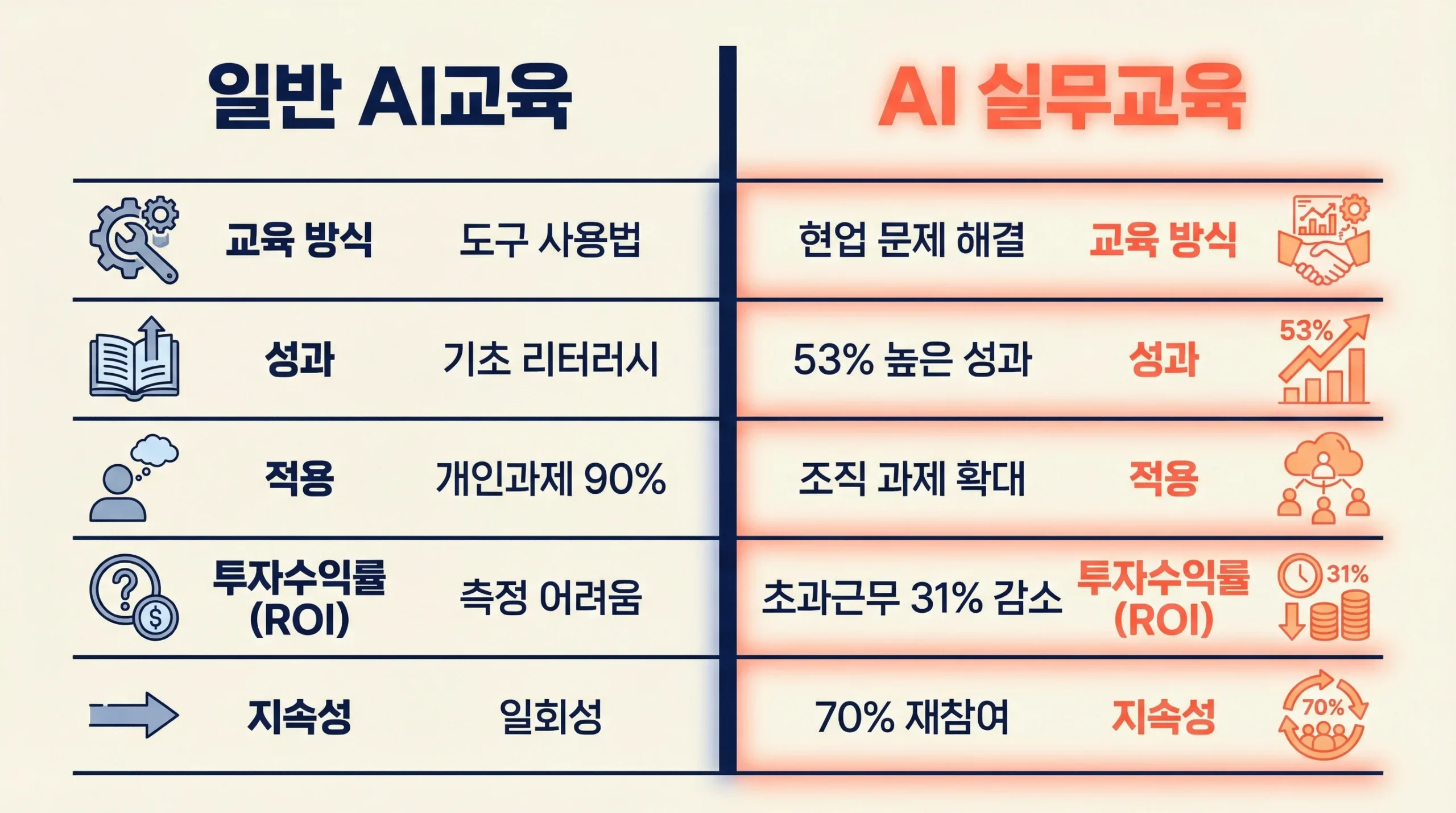 | 비교 항목 | 일반 AI교육 | AI 실무교육 |