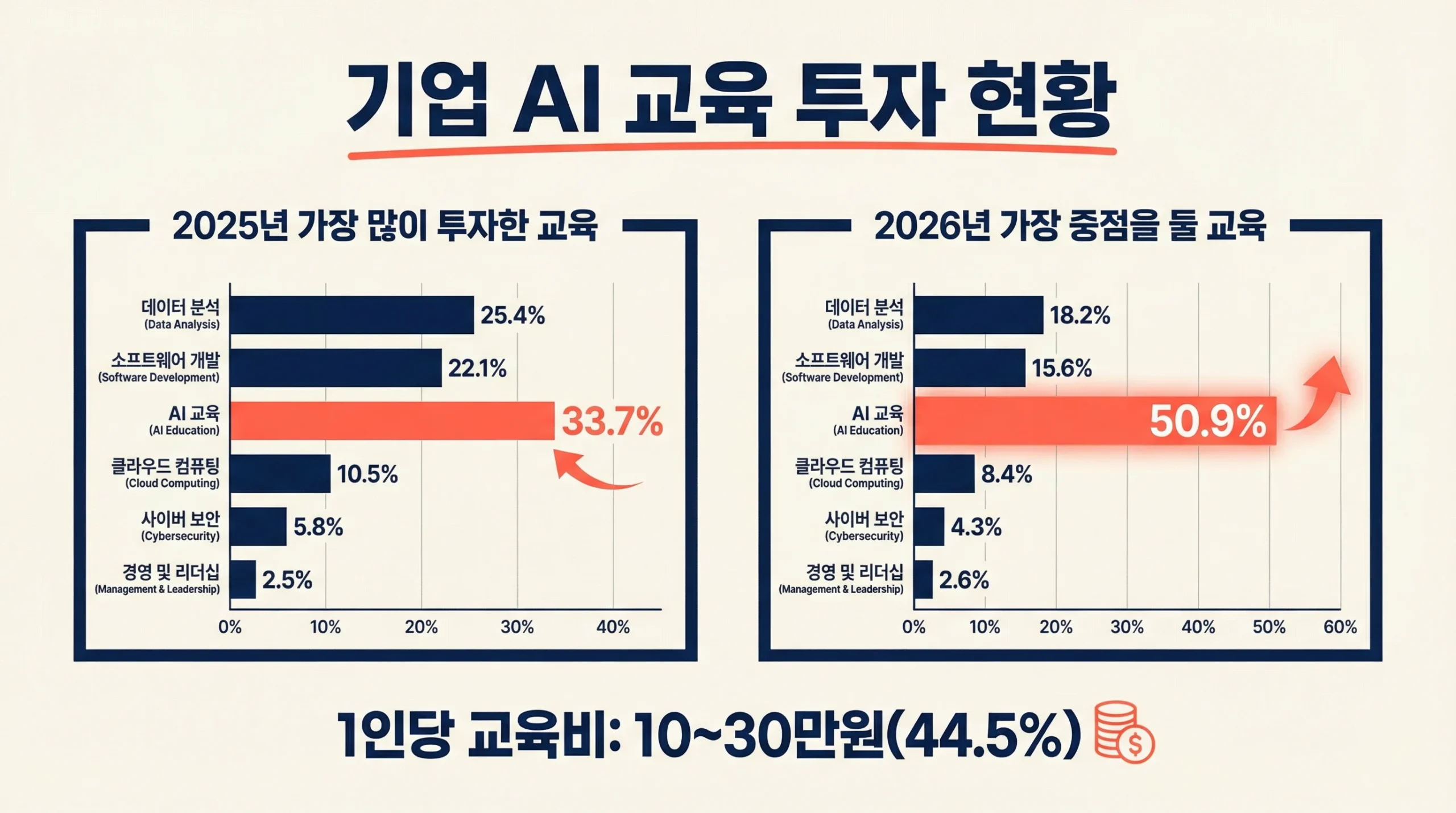 | 2026년 중점 교육 분야 | AI 교육 50.9% (1위) | 절반 이상의 기업이 AI 교육 확대 예정 |