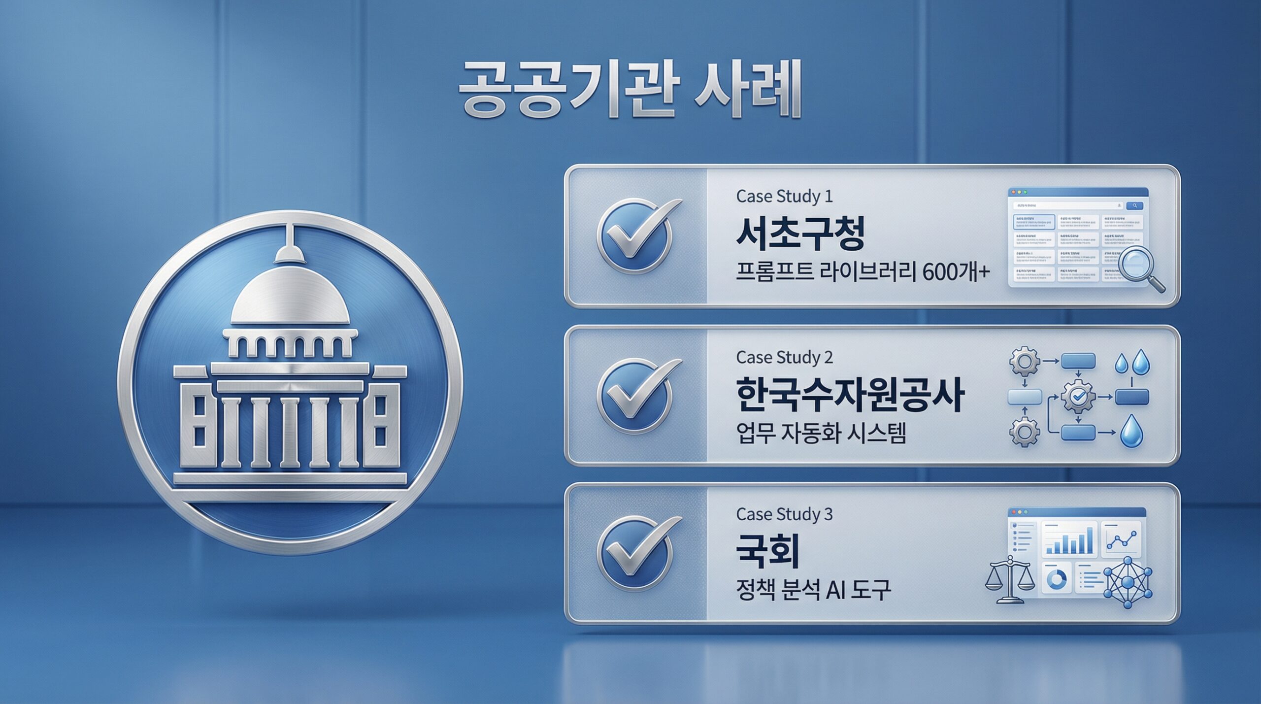 서초구청 AI 프롬프트 교육 사례에서는 600명 이상의 직원이 부서별 맞춤 프롬프트 라이브러리를 구축하여 행정 업무 효율을 크게 높였습니다.