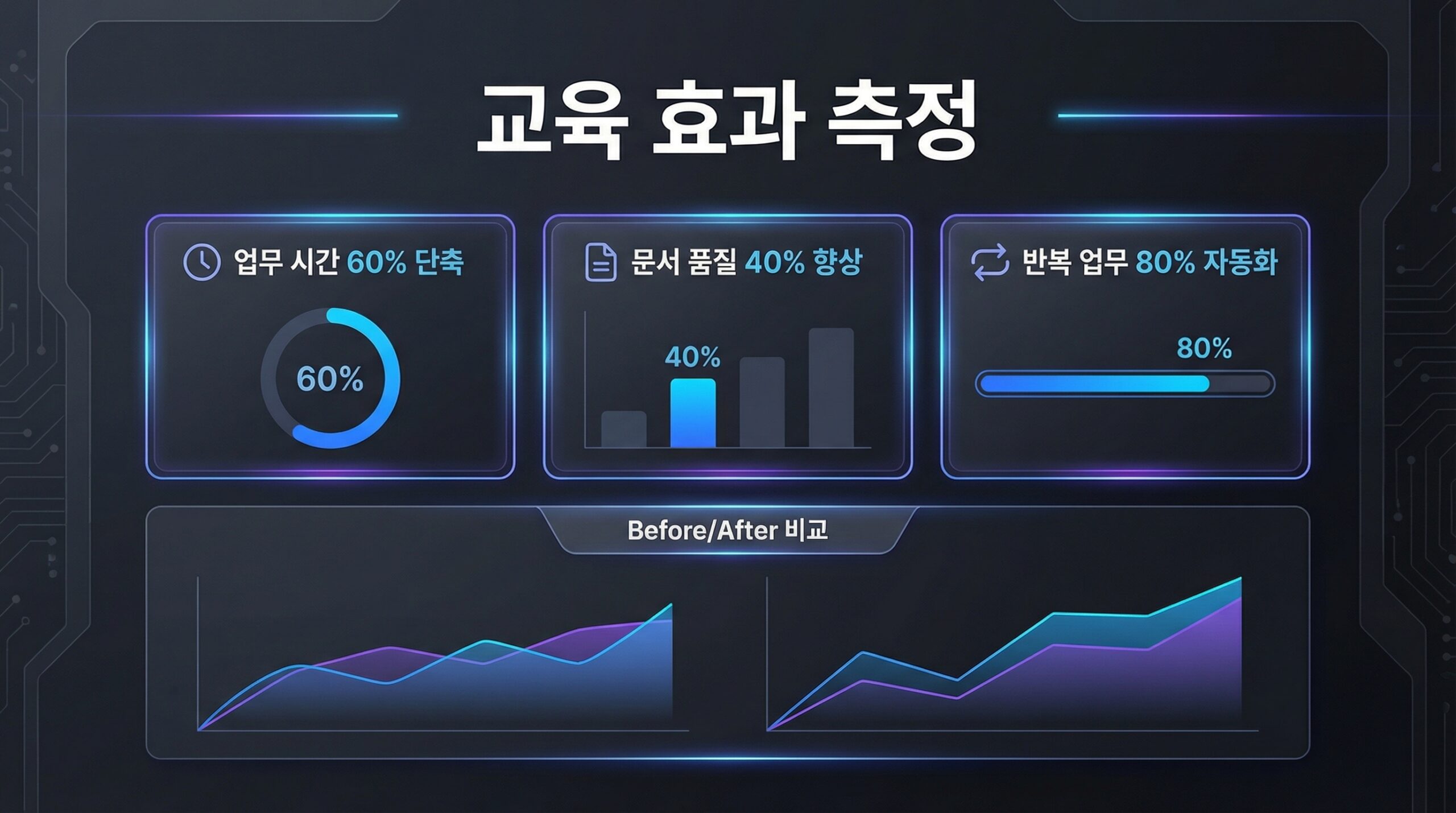 AI활용교육의 ROI를 명확히 하려면 교육 전후의 변화를 측정해야 합니다. 다음은 주요 측정 지표와 실제 수치입니다.