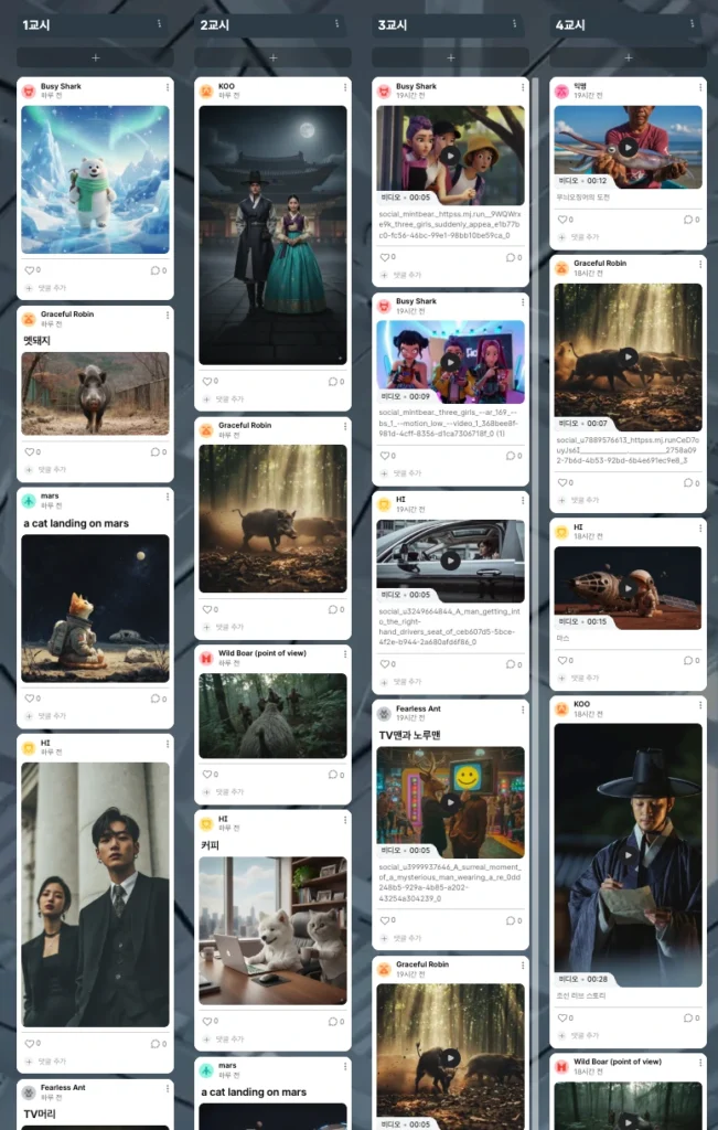 교육 참가자들이 생성한 AI 이미지를 패들렛(Padlet) 플랫폼에 실시간으로 업로드하여 동료들의 작업물을 공유하고 피드백을 주고받았다.