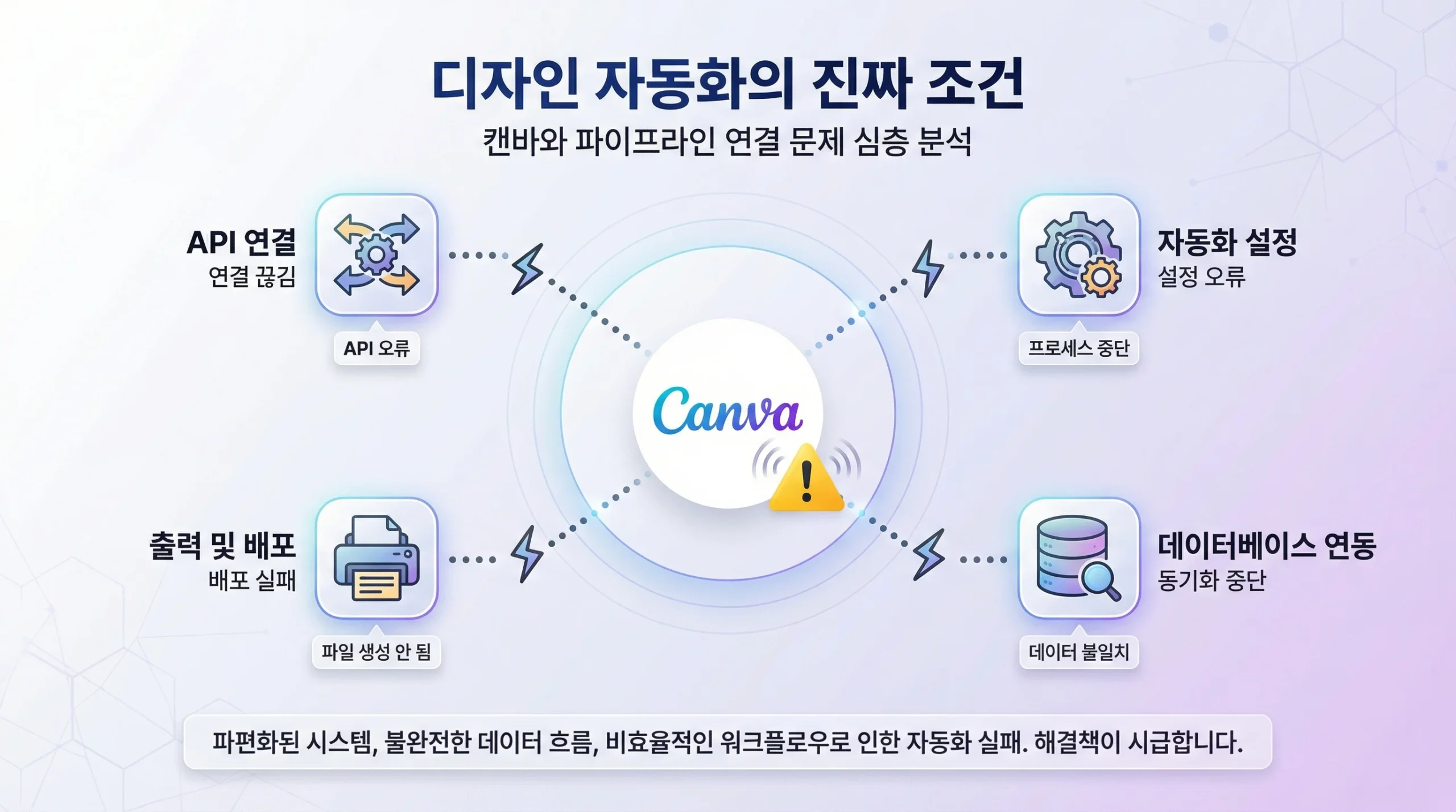 이 글에서는 캔바 강의가 디자인 자동화로 이어지지 않는 구조적 원인 4가지를 분석하고, 실제 기업에서 디자인 자동화를 구현하기 위해 갖춰야 할 조건을 제시합니다.