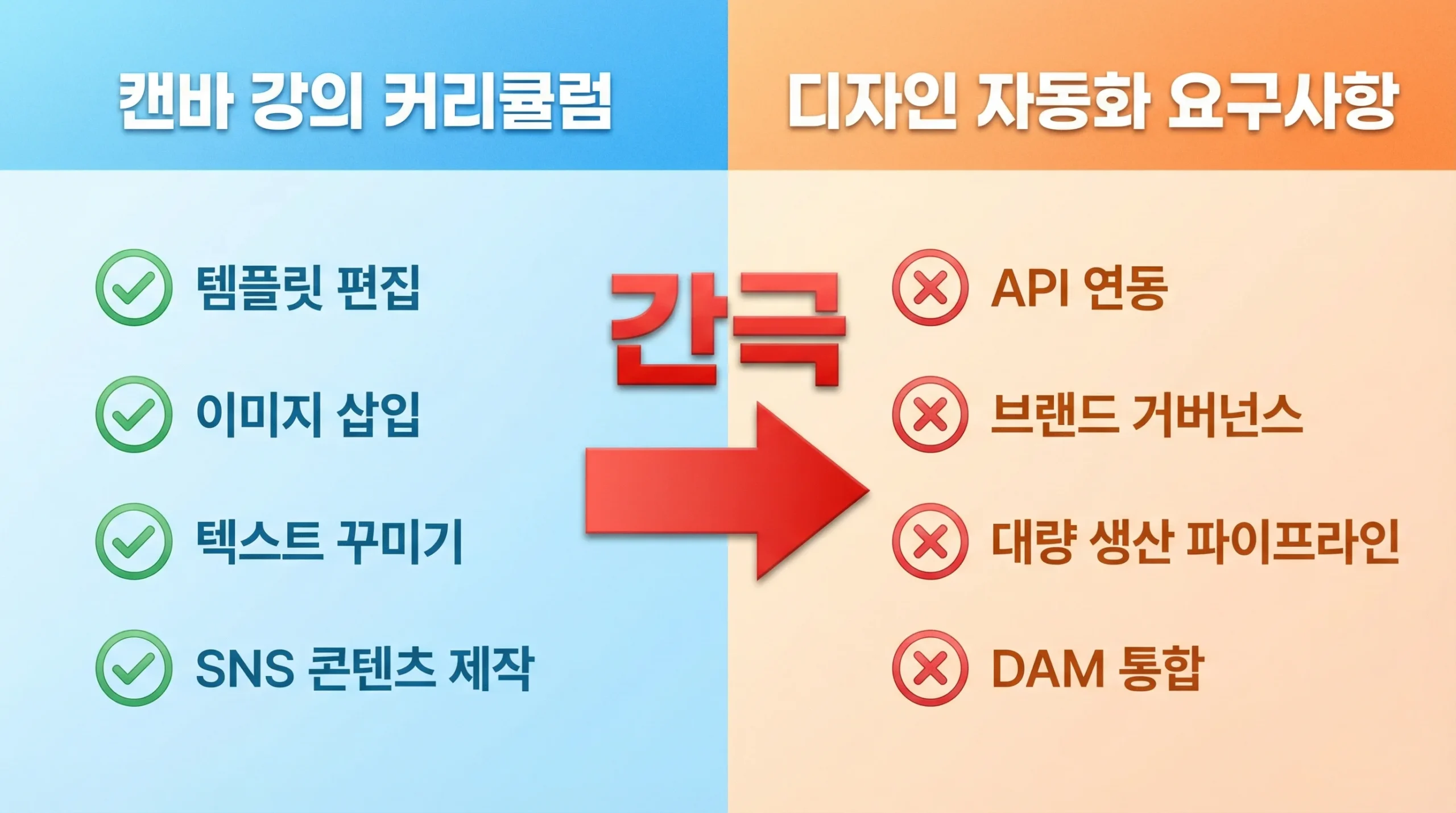 캔바 강의가 가르치는 것과 디자인 자동화의 간극은 무엇인가?