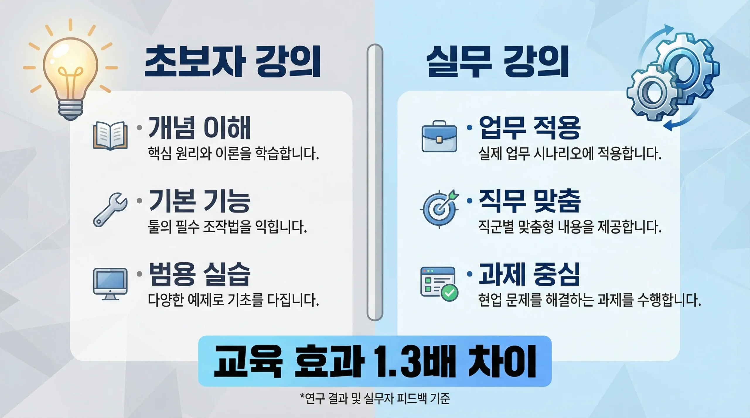| 핵심 목표 | AI 개념 이해, 기본 기능 습득 | 업무 적용, 생산성 향상 |