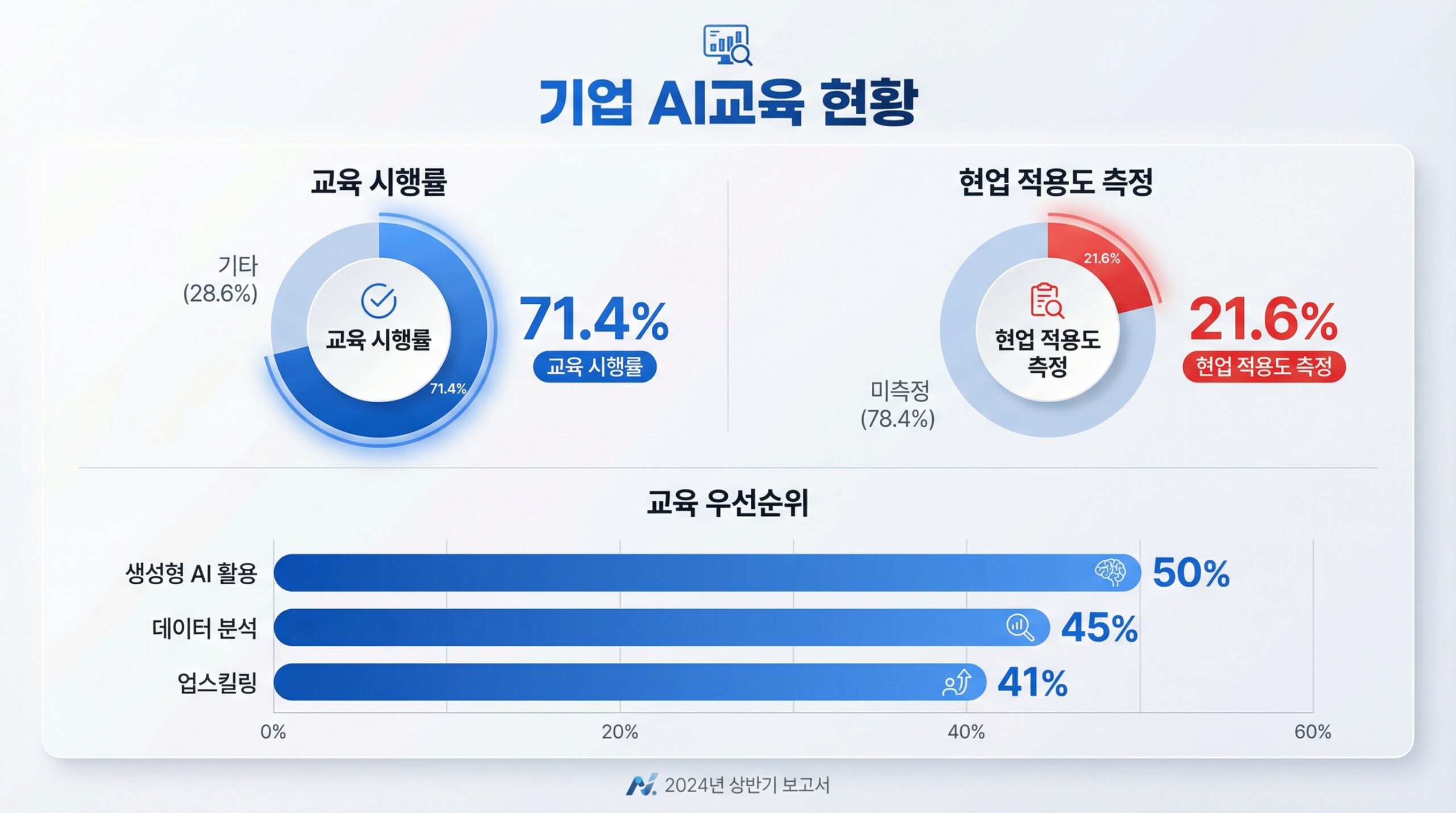 AI 교육 시행 기업 비율 71.4% 휴넷 (2025)