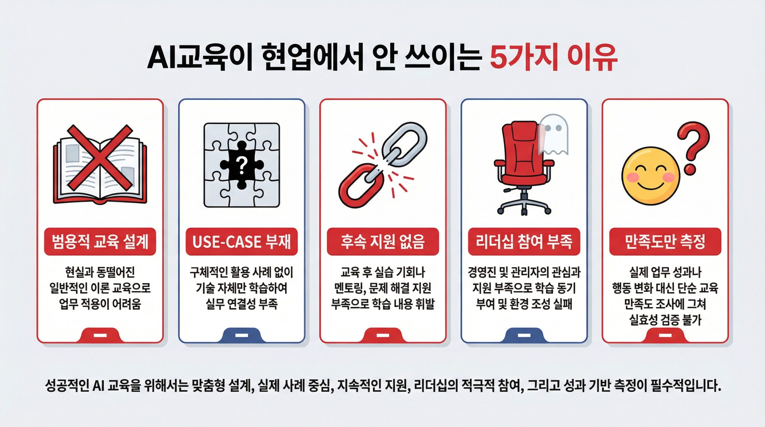 기업 AI교육이 현업에서 안 쓰이는 5가지 핵심 원인은?