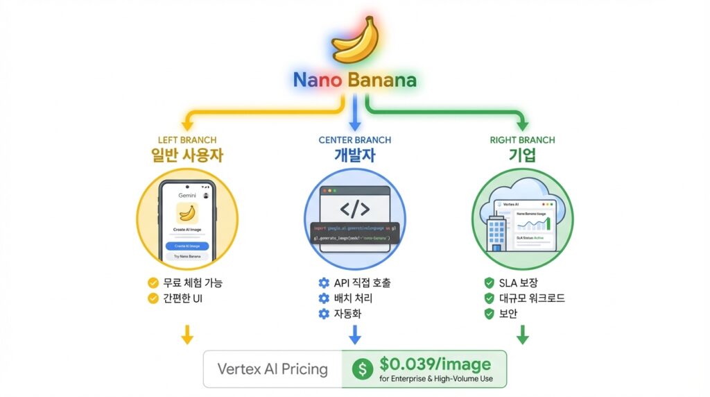 정리하면, 나노바나나는 개인 크리에이터부터 대기업까지 다양한 규모에 맞는 접근 방식을 제공한다. 이는 나노바나나가 범용 AI 이미지 도구로 자리잡은 이유다.