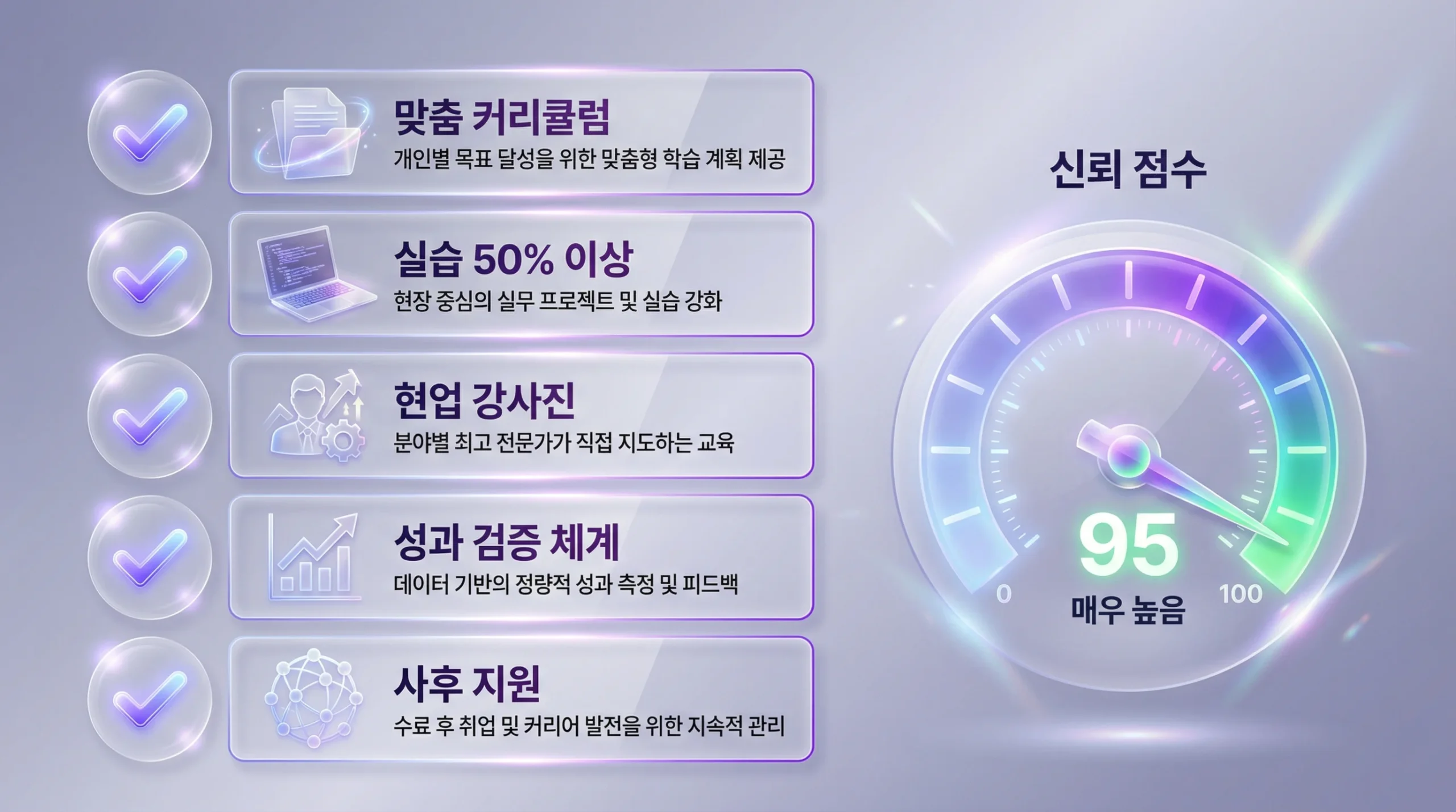 AI교육기관 선택이 어려운 이유는 간단합니다. 교육 품질을 객관적으로 비교할 기준이 없기 때문입니다.